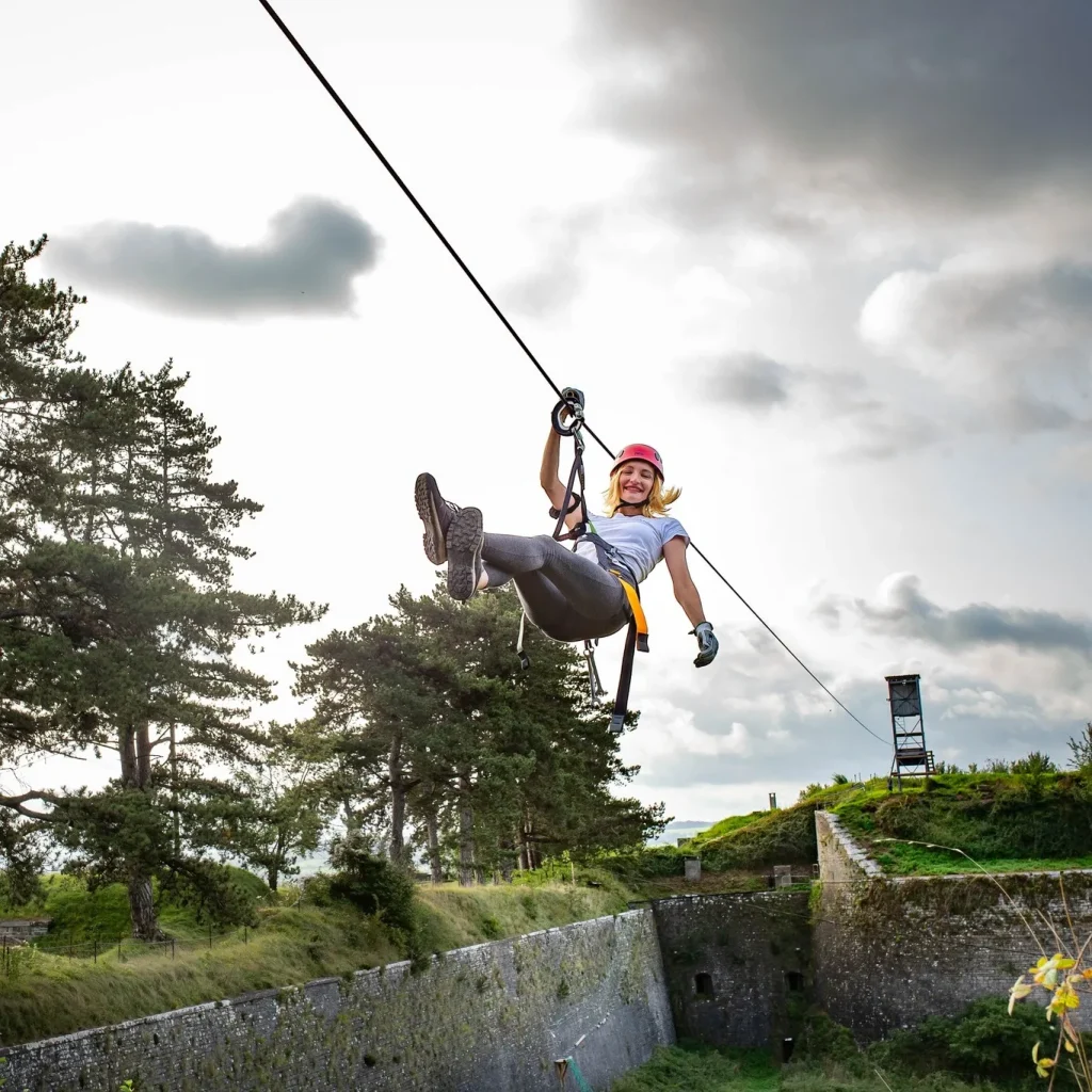 Au nord des Ardennes, la citadelle de Charlemont surplombe Givet et la Meuse. Ancien centre d’entrainement commando de l’armée française, la forteresse renoue avec son passé pour vous proposer des activités ludiques et sportives : laser game dans le village et activité « accropierre ». S’inspirant des épreuves de l’ancien centre commando, vous serez invité à vous dépasser en empruntant via ferrata, filets, tyroliennes et pont de singe dominant courtine et fossé à près de 30 m de hauteur, sautant dans le vide ou escaladant les remparts, le tout agrémenté d’un coaching. De belles émotions en perspective !