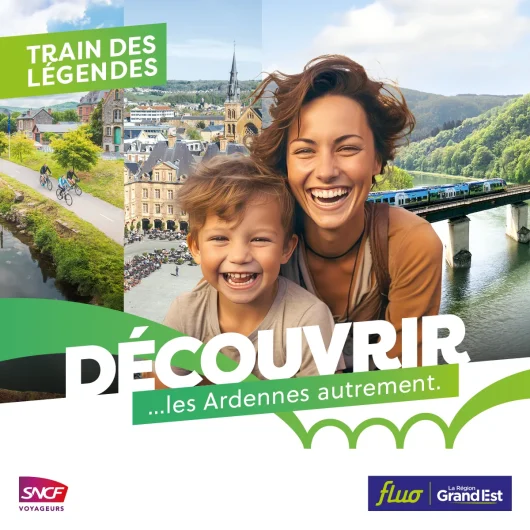 Cet été, embarquez à bord du Train des Légendes en Ardenne sur la ligne TER Charleville-Givet à tarif préférentiel avec le pass “1 jour à 10 euros”. Pour voyager d’une manière plus respectueuse pour l’environnement, à petit prix tout en faisant de jolies découvertes, le train est idéal ! Partez également à la découverte de la Vallée de la Meuse à bord du train des légendes avec les Amis du Parc naturel des Ardennes et leurs évasions ferroviaires !