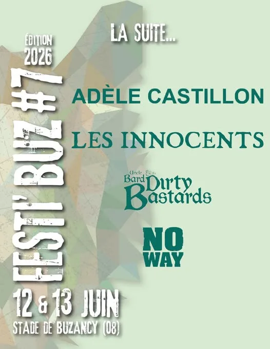 BuzancyPlongez dans l’effervescence d’un festival chaleureux et dynamique au cœur des Ardennes ! Les 12 et 13 juin 2026, la petite commune de Buzancy deviendra le point de rendez-vous incontournable pour tous les amateurs de musique pop-rock avec la 7e édition du Festi’Buz. Avec Skip The Use, Les Fatals Picards, Celkilt et Les P’tits Fils de Jeanine, le Festi’Buz promet une expérience unique, alliant convivialité et moments musicaux inoubliables.