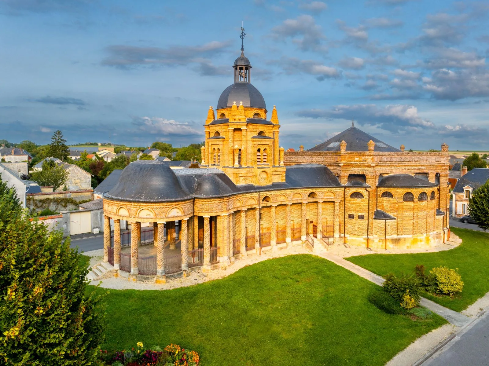 Achevée en 1685, l’église Saint-Didier surprend par son plan centré complexe, composé d’ellipses et de volumes circulaires. Réalisée en briques et en ardoises, entre rose et gris, elle apparaît tout en rondeur, avec ses colonnades, ses dômes et sa coupole.
