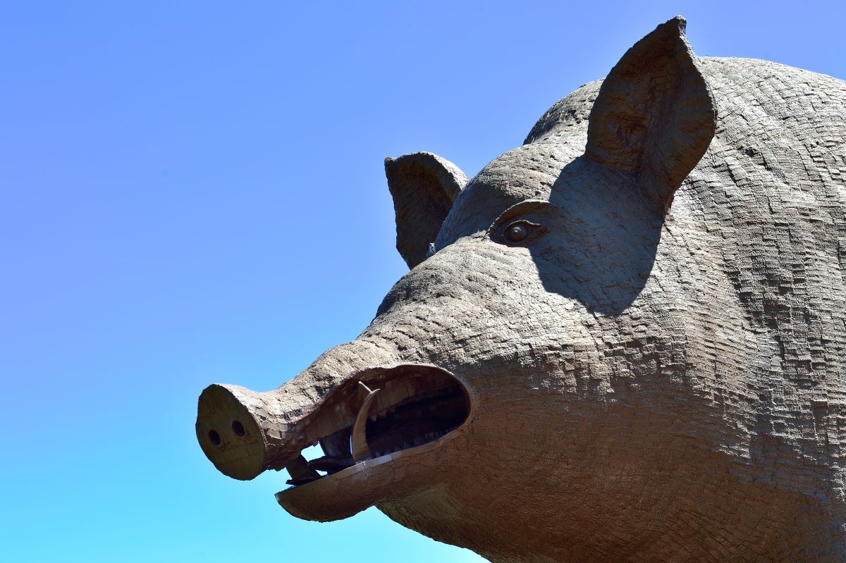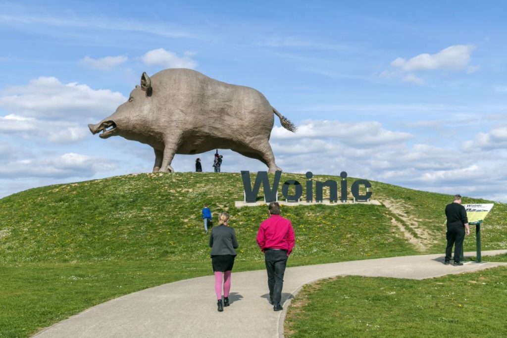 Encore vous faudra-t-il réussir à faire entrer dans le cadre le plus grand sanglier du monde : 50 tonnes, 10 mètres de haut, 13 mètres de long et 5 mètres de large ! Quelle vision insolite pour les automobilistes traversant les Ardennes sur l’A34. Arrivés à proximité de l’aire d’autoroute des Ardennes de Saulces-Monclin (sortie 14), à 14 km de Rethel, Woinic apparaît, fièrement campé sur ses pattes, la gueule légèrement ouverte, les oreilles aux aguets.