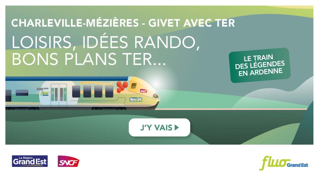 Cet été, embarquez à bord du Train des Légendes en Ardenne sur la ligne TER Charleville-Givet à tarif préférentiel avec le pass 1 jour à 10 euros. Pour voyager d’une manière plus respectueuse pour l’environnement, à petit prix tout en faisant de jolies découvertes, le train est idéal !